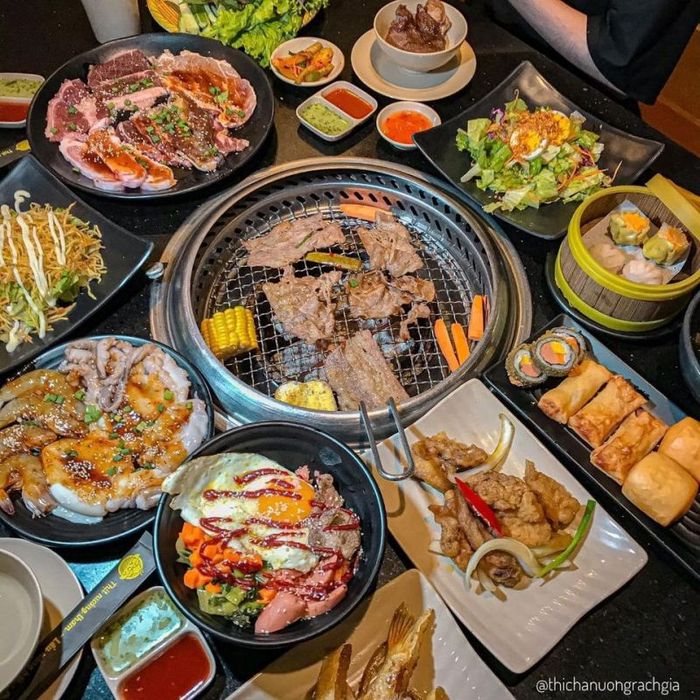 Here, guests can indulge in a buffet of well-seasoned grilled meats, including premium American beef, pork belly, pork ribs, and seafood. Depending on the pricing tier, you can also enjoy dishes like bibimbap, hotpot, and other snacks. Additionally, Soowon BBQ Rạch Giá - Buffet Lẩu Nướng offers friendly, attentive service that ensures a great experience. You’ll get to savor a variety of imported American beef, perfectly marinated with flavors from Korea. Don’t miss out on their delicious Kimchi Hotpot and Thai Hotpot, which are also customer favorites!