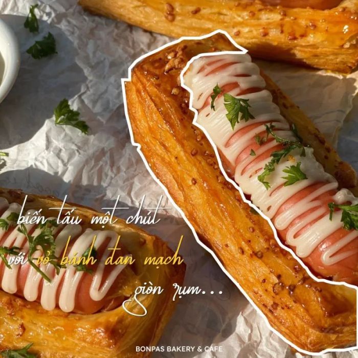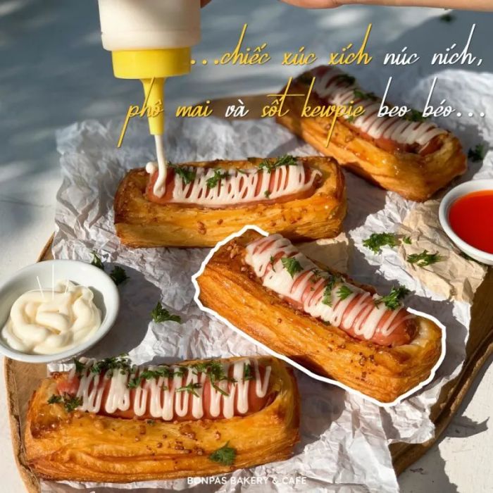 The hotdogs at BonPas are highly praised by customers for their distinctive taste. The key feature of these hotdogs is the use of fresh, high-quality ingredients, crispy bread, and a savory sauce. What makes these hotdogs stand out is their use of Danish pastry dough instead of the usual bread. The Danish pastry shell is light and flaky, with a subtle buttery aroma, perfectly paired with a juicy sausage, cheese, and rich Kewpie mayo sauce. You’ll want to try them as soon as you lay eyes on them.