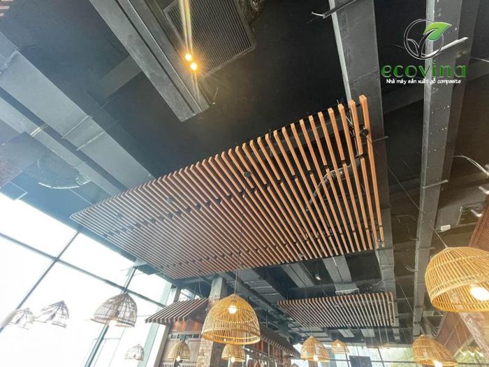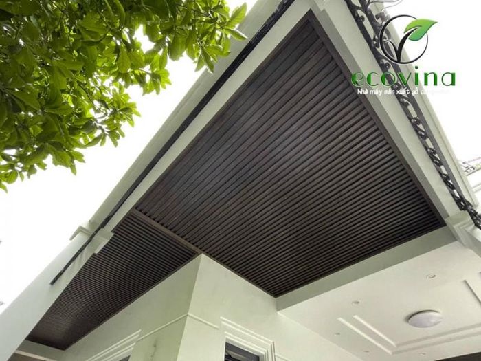 CallVietnam Ecovina Group, an eco-friendly materials joint stock company, specializes in supplying ceiling plastic panels made from resin, rice husks, or wood powder and additives using compression molding technology. The introduction of Composite wood plastic ceiling panels has overcome the disadvantages of natural wood such as warping, decay, termites, and resistance to water and harsh weather, bringing about changes in exterior architectural design ideas for various projects.