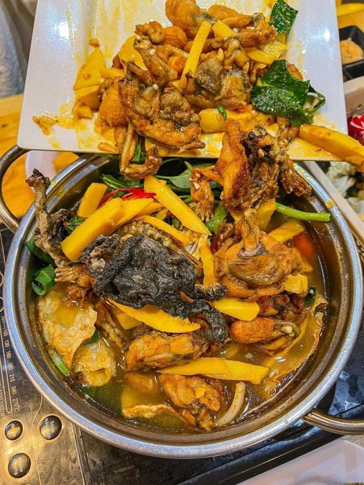 The specialty at Anh Em Quán is its 7 different types of snails, including: stir-fried snails with tamarind, stir-fried snails with lemongrass and chili, spicy stir-fried snails, butter-fried snails, sweet and sour snails, sour snails, and boiled snails. The menu also offers popular snacks for the guys, such as fermented pork, sour meat, grasshoppers, and dried squid, all at incredibly affordable prices – perfect for friends to indulge without worrying about the cost. Recently, the restaurant expanded its menu with an enticing selection of hotpots and grilled dishes. With a spacious, airy atmosphere, quality food, and reasonable prices, Anh Em Quán consistently attracts large crowds in the evening. If you don't believe it, come and see for yourself!