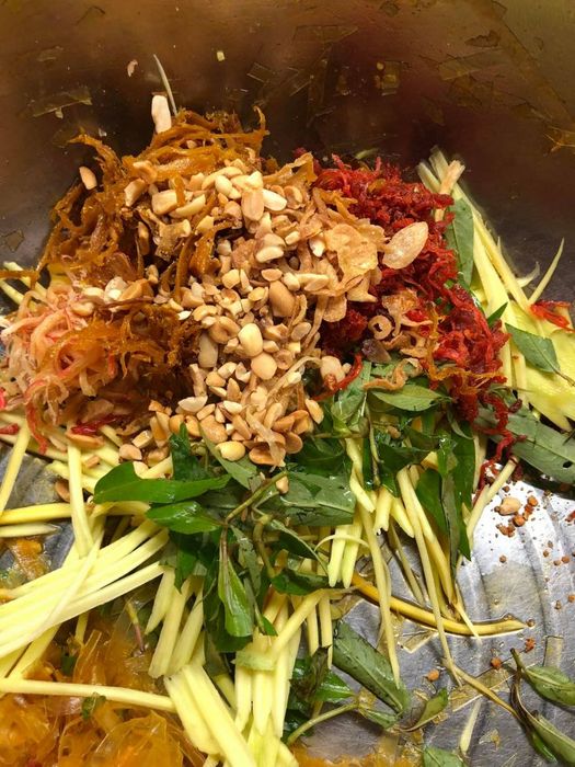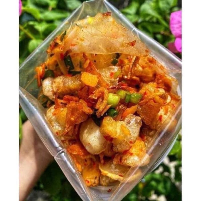 Located in a small corner, if you're not quick, you might miss the chance to try 'Bánh Tráng Trộn' at 'Bánh Tráng Trộn' Bum Béo, as it’s extremely popular. Here’s why you should give it a try: The 'Bánh Tráng Trộn' is incredibly delicious, offering a true Southern flavor. The variety of toppings, including dried beef, dried chicken, mango, and quail eggs, combined with a strong citrus aroma from tamarind, will definitely make you crave more. The fresh chili here adds a potent kick, so if you’re not a fan of spice, be sure to ask for less heat.