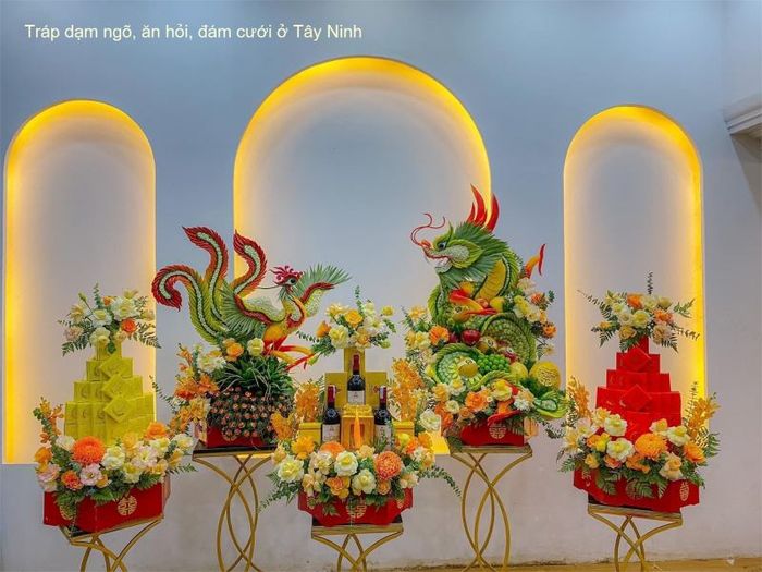 According to Vietnamese customs, meticulous attention to perfection is crucial when organizing ceremonies with age-old traditions. Therefore, engaged couples need to meticulously prepare the betrothal ceremony, avoiding unnecessary mistakes to ensure the ceremony proceeds flawlessly. Quickly engage with the wedding tray services of Dragon and Phoenix on Wedding Day - Tây Ninh for detailed and clear advice, helping make your significant day complete and meaningful.