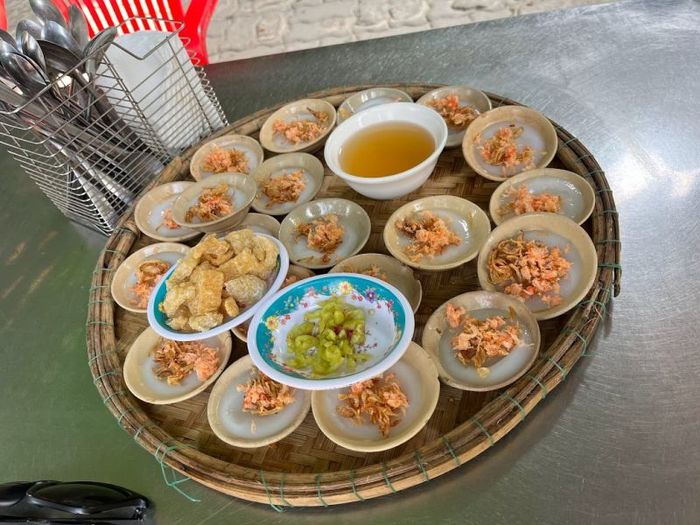 The bánh bèo chén is served with a homemade dipping sauce, a perfect blend of salty, sweet, and a hint of spice, which complements the dish beautifully. You can drizzle the sauce over the bánh, allowing it to soak in and enhance the flavors, making it even more delicious. Bánh Bèo Chén - Trần Huy Liệu specializes solely in this dish, offering trays with 15 to 20 cups depending on your appetite.