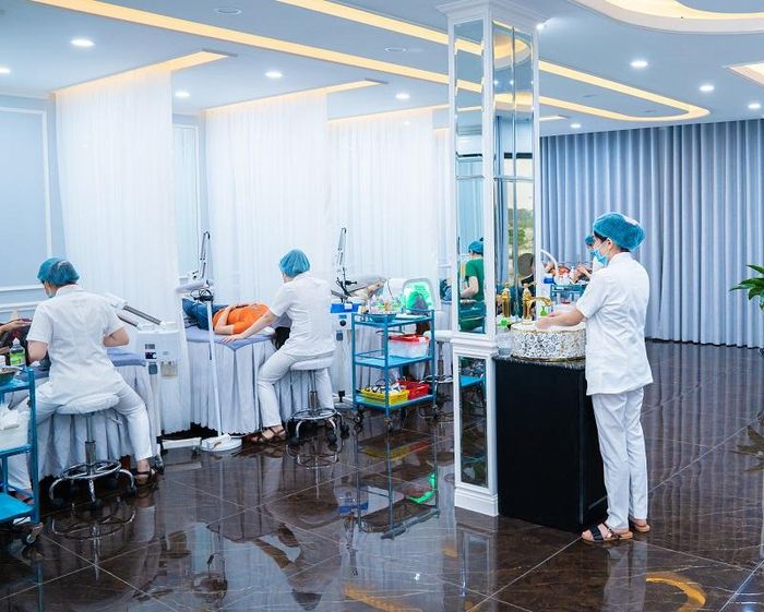 - The spa offers a wide range of beauty services to meet the needs of each customer, helping women achieve perfect beauty such as acne treatment, melasma treatment, freckles, permanent hair removal, relaxing face and body massages, scar treatment, lip tattooing, eyebrow tattooing, makeup, skin examination - advice, herbal steam baths, eye rejuvenation, super-moisturizing treatments for dry skin, skin whitening, skin function restoration, high-tech laser treatments, and many other attractive face and body beauty services.