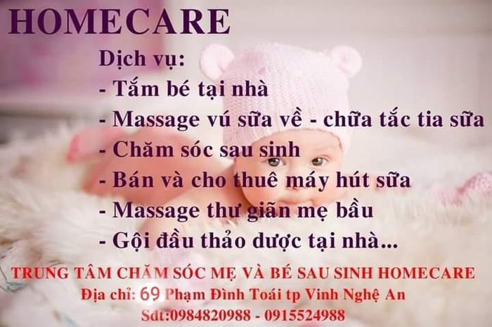 Facebook: facebook.com/Trung-tam-cham-soc-Me-va-Be-sau-sinh-HomeCare-748740661885936/