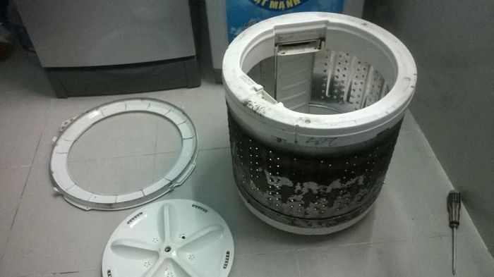 - Fixing the washing machine with a jammed door, damaged lid, or torn drum