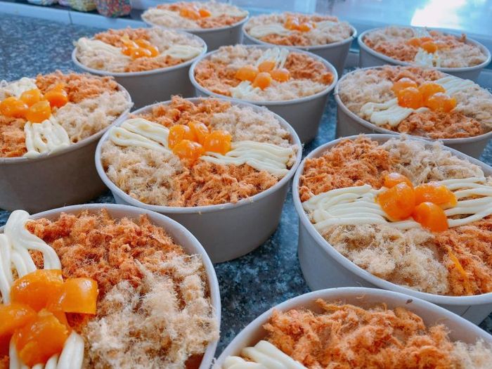 Call NowThe sponge cake base of 7.PM Tea And Cake is praised for its soft and smooth texture, never dry. It combines with salted eggs soaked in traditional mai quế wine, brushed with sesame oil, and baked, resulting in eggs that are not only tender but also incredibly fragrant. Additionally, the shiny golden and transparent sauce, sweet yet savory, with the aroma of butter, makes the salted egg sponge cake at 7.PM Tea And Cake even more special. When you indulge in it, you'll also be pleased with the house-made shredded (pork) floss, adding a perfect touch to the cake's flavor.