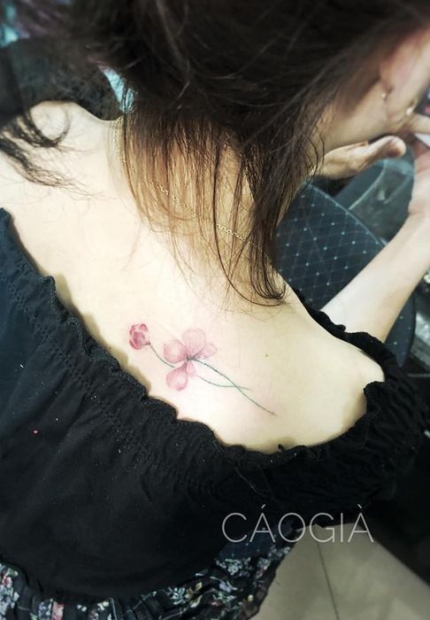 Discover the elegance of mini flower tattoos at Cáo Tattoo, perfect for sunny days. Delicate floral branches become exquisite focal points on your body, a splendid choice that balances beauty without being too elaborate for this summer.