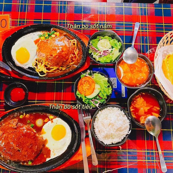 Call NowBeefSteak Bình Dương offers a variety of American beef steaks with BBQ sauce, green pepper sauce, and mushroom sauce. The new dish also includes Mongolian-style beef stir-fry. The beef is tender, fresh, cooked to perfection, and served with a refreshing salad under dressing to avoid greasiness. What's special here is that instead of crispy fries, they use mashed potatoes that melt in your mouth. The bread served to guests is always warm, crispy, and not too hard. Additionally, the restaurant serves various pasta dishes in sauce and fried rice. BeefSteak Bình Dương offers very competitive prices, cheaper than the general market, so why hesitate?