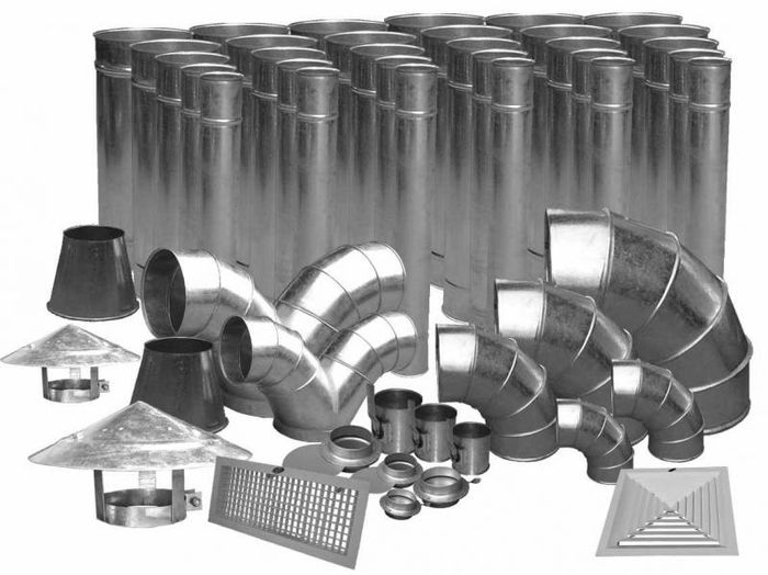 - Air duct accessories: Reducers, T-junctions, flexible connectors, branches, tees, caps, ...