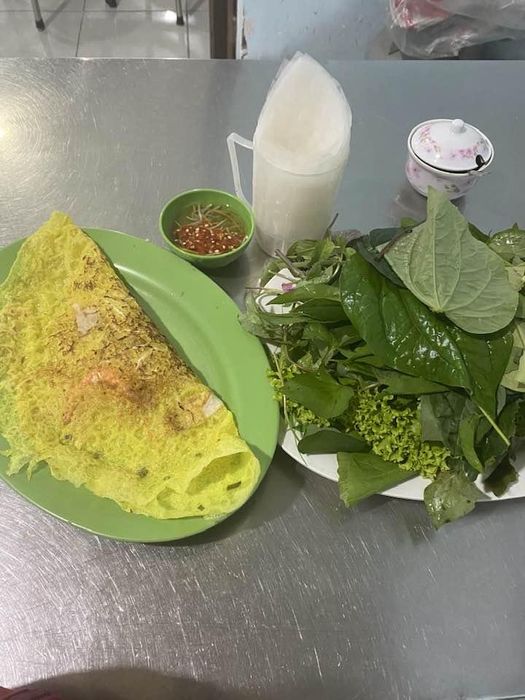 Ba Thi's Jumping Shrimp Bánh Xèo is a delicious variation of the traditional bánh xèo from Bình Định, now available in Bình Dương. Known for its fresh and natural ingredients, this version of bánh xèo is made with finely ground rice flour, which gives it a light, opaque appearance after cooking, yet it remains incredibly crispy and flavorful. The filling consists of bean sprouts, shrimp, and pork, and unlike other bánh xèo, this one is served flat without being folded.