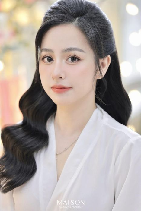 At Mai Sơn Makeup, great care is taken in applying a light, flawless foundation that still conceals imperfections, while every detail—eyebrows, eyes, lips—is meticulously refined. This attention to detail helps brides radiate confidence and shine on their special day.