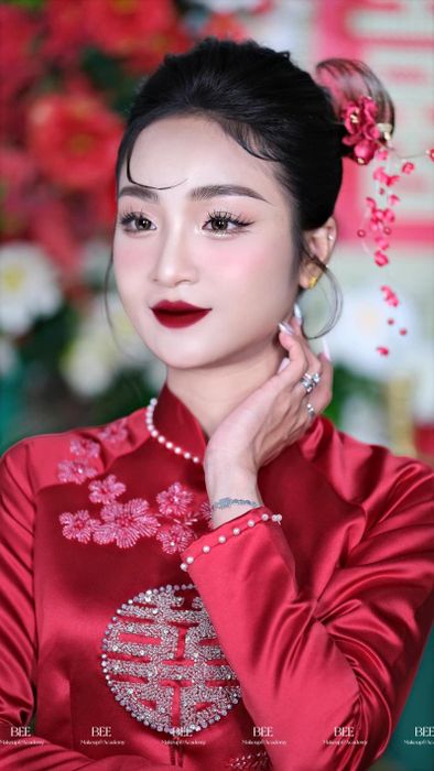 The modern makeup trend focuses on accentuating each person’s natural beauty, so a translucent, natural foundation is always more charming than an overly white face. To avoid the generic, commercial makeup look, Bee Makeup Academy strives to preserve a distinctive style that remains unique and not easily replicated. With soft, natural tones that create a youthful, fresh, and serene look, this style of makeup is loved by brides who want to keep their look pure and radiant. A gentle, Vietnamese-inspired bridal look will undoubtedly stand out amidst the more common bridal trends.