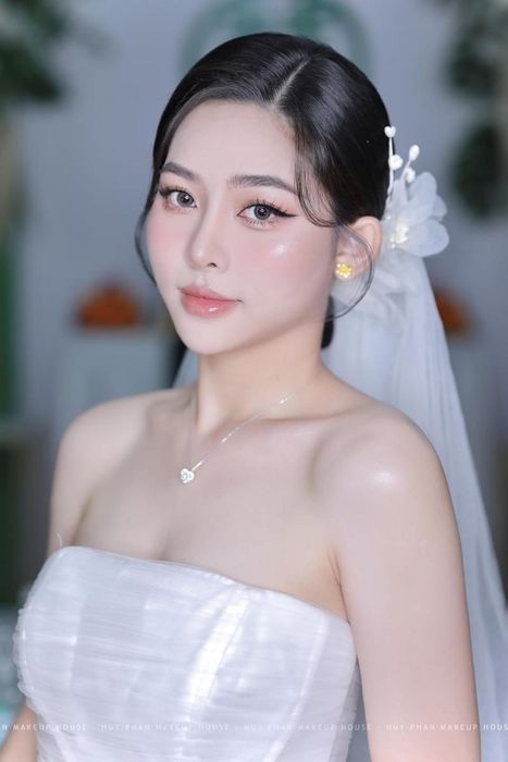 Huy Phan Makeup aims to create a fresh, youthful, and elegant look for every bride. The key to this makeup style is the use of neutral tones that match the bride's natural skin tone, giving the illusion of a flawless, naturally radiant appearance. A light foundation enhances the bride’s face, leaving her looking vibrant and radiant while concealing any imperfections.
