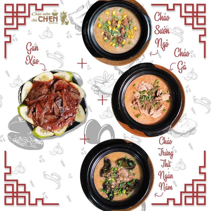 The rice used for cooking the porridge is high-quality, combined with glutinous rice in a specific ratio, and simmered for three hours to ensure the grains are soft and smooth without breaking apart. The chicken is tender and juicy, with golden, crispy skin that is both visually appealing and delicious. When the clay pot of porridge is served, it is always steaming hot and bubbling. Pairing the porridge with fragrant chrysanthemum tea creates an irresistible and comforting experience. With all these appealing factors, it’s no wonder that customers instantly think of Cháo Chú Chen when craving tasty chicken porridge.
