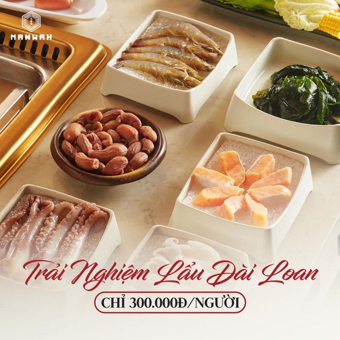 Manwah - Taiwanese Hot Pot is a Taiwanese hotpot buffet restaurant where diners can indulge in a variety of flavorful broths, each offering a naturally sweet base enriched with unique Taiwanese herbs. The menu features popular hotpot options like Mala, Mushroom, Thai, and Taipei-style broths. Manwah also serves a wide range of Taiwanese-style dipping ingredients, including dumplings, wontons, fish cakes, beef, pork, and seafood.