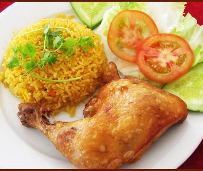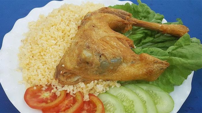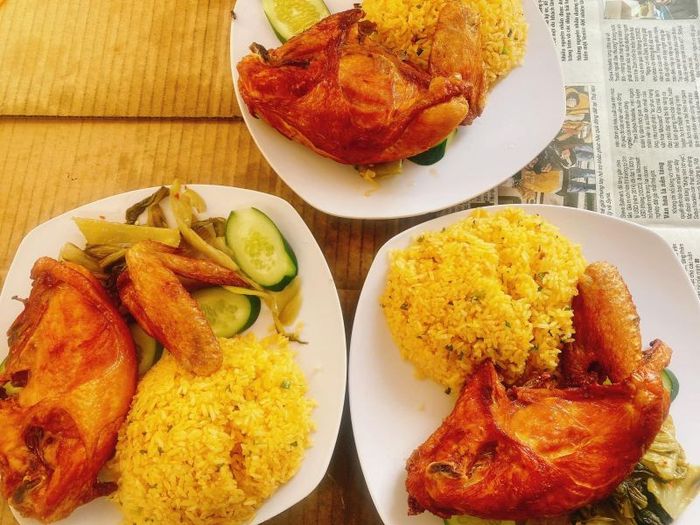 Visitors to Fried Chicken Rice Lân Hà are delighted by the free refreshing drink served with every meal. The rice is enhanced with a touch of turmeric, giving it a rich golden hue. The chicken is mainly deep-fried to a golden crisp and coated in a thin layer of honey, which imparts a subtle sweetness. The restaurant is praised for its clean environment, with stone-topped tables adding a nice touch to the decor.