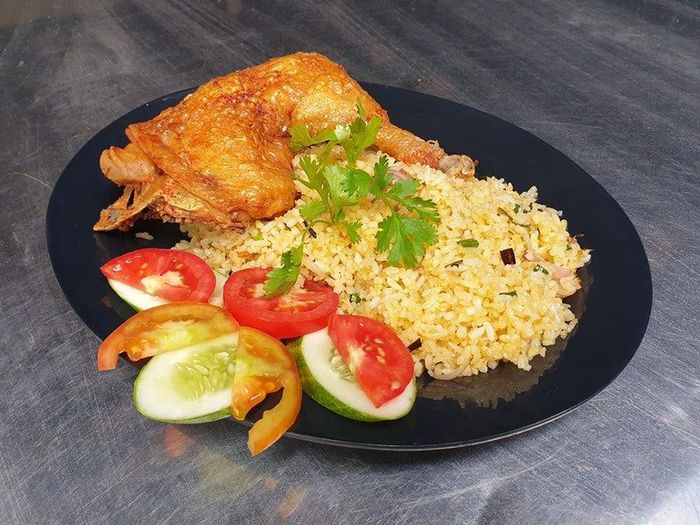 The fried rice is also quite delicious, with a rich tomato-based sauce that complements the crispy fried chicken. To keep up with the flow of customers, the staff fries the chicken alongside the crispy skin to ensure the bones are also crunchy. Additionally, the chicken is lightly steamed before frying, so the meat stays juicy. You can also try other tasty options like stir-fried beef with rice or stir-fried noodles, which are Western dishes but cooked in a Chinese style, with the most noticeable feature being the savory tomato sauce, which suits Vietnamese tastes.