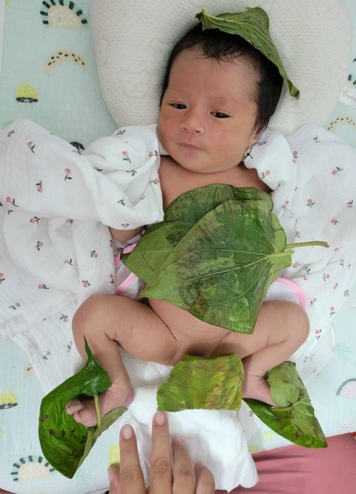 - Using betel leaf steaming to warm and help the baby sleep peacefully.