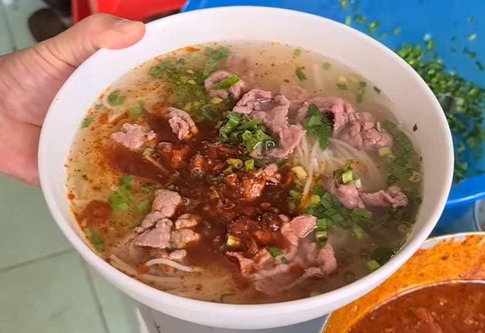 When talking about the top pho spots in Bac Ninh, you can't miss Pho Bo Co Su. Located on a busy street, this pho restaurant is always crowded with customers. The reason it draws so many people is its authentic traditional pho flavor. The pho broth here is made by simmering beef bones, which results in a delicious and flavorful taste, and the bowl is generously filled with beef.