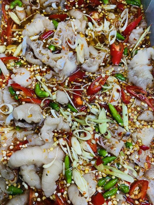 Ora Quán, a unique culinary spot in Da Nang, has won over food lovers with two distinctive chicken feet dishes: Thai-style chicken feet and lemongrass and tắc marinated chicken feet. These dishes not only represent the distinctive flavors of Vietnamese cuisine but also showcase a refined blend of spices and unique preparation methods.