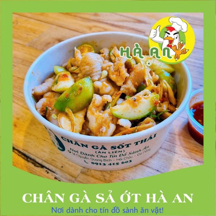 Chân gà sả ớt Hà An is a trusted destination for chicken feet lovers in Da Nang. Known for its affordable prices, they offer combos that pair chicken feet with a variety of other dishes. Popular items include boneless Thai-style chicken feet, lemongrass chili boneless chicken feet, and spicy Thai sauce chicken feet. The chicken feet here are marinated to perfection, absorbing the fresh aroma of lemongrass, the spicy kick of chili, and the tangy flavor of tamarind, making them irresistibly delicious.