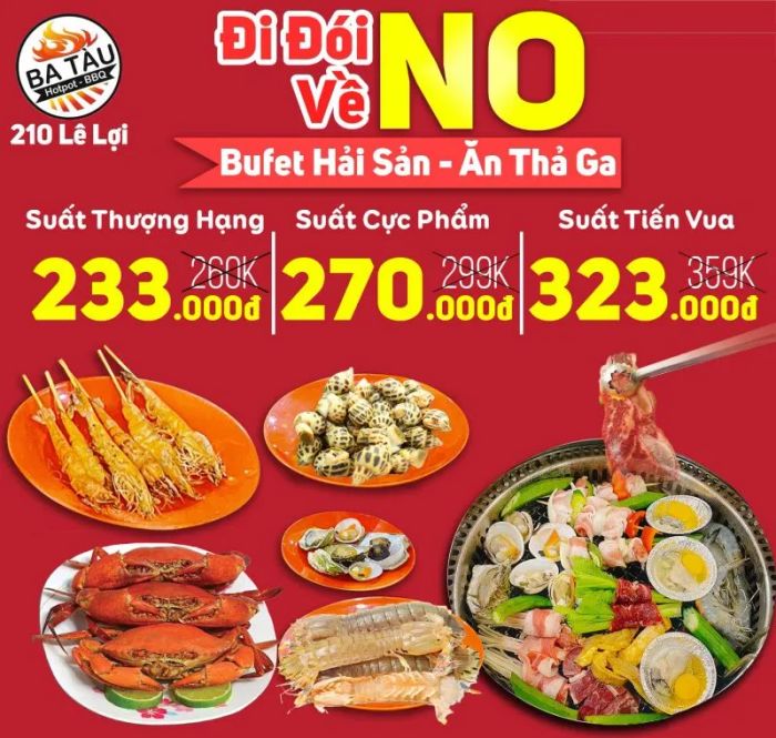If you're looking for an irresistible seafood buffet in Hai Phong, you can't miss Ba Tau Seafood Buffet. Located on the busy Le Loi street, this spot is easy to find and offers an exceptional dining experience with fresh seafood. The menu features several tiers: the Premium Set (232,000 VND), the Ultimate Set (279,000 VND), and the Royal Set (323,000 VND), each offering a range of options to fit your budget and satisfy your cravings.