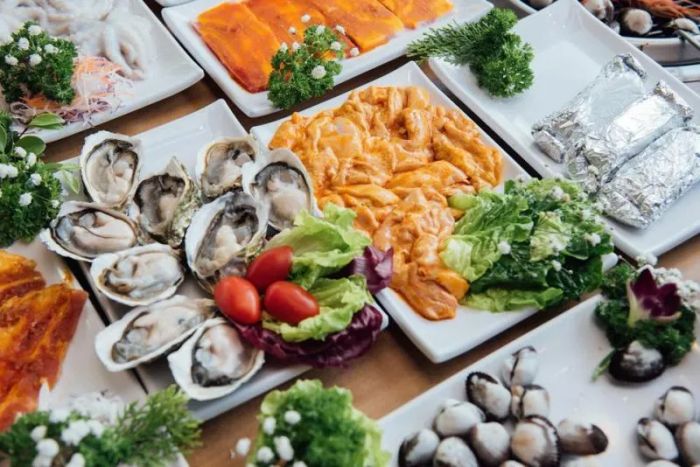 The restaurant enjoys a loyal and large customer base, and offers amazing promotions for all guests. You can enjoy their “BUY 6, GET 1 FREE” offer from Monday to Friday on all buffet packages. On weekends (Saturday and Sunday), customers also get a 5% discount off their bill. For groups of 10 or more, free birthday decorations are provided, and everyone can enjoy an unlimited buffet with over 70 mouthwatering grilled seafood and hotpot dishes.
