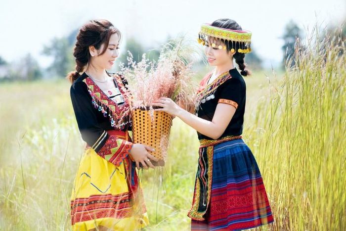 Ethnic performance costumes are commonly used in photo shoots, plays, dances, and artistic performances such as 'Ho on the Mountain, Evening in the Upper Village, Gong Festivals of the Central Highlands, Wings of the Central Highlands, Highlands Dance, Sound of the Highlands, The Highlands Celebration, Rain Dance of the Highlands, Highlands Emotions, Highlands Scents, Love Songs of the Highlands' – all of which showcase the lifestyle and culture of the people in the Central Highlands and Northern Mountain areas. These costumes are often paired with traditional accessories such as gùi, umbrellas, and fans during performances. At Hoa Mai Performance Costumes, you can find everything you need for these performances, including costumes and props.