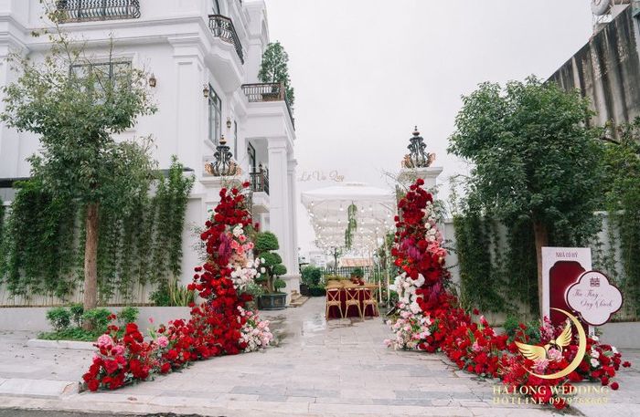 At Ha Long Wedding, couples will receive guidance on choosing colors that match their wedding venue, from warm tones to vibrant reds, soft greens, or refreshing pastel hues that complement the bride and groom's outfits and highlight the wedding space. The use of fresh flowers for ancestral altars adds a touch of elegance and a natural fragrance, creating an inviting atmosphere that enhances the joy of the day.