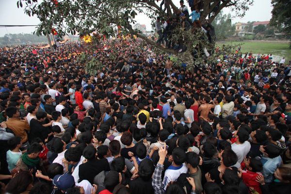 The festival is lively at the communal yard, featuring the casting of bronze (Princess Ngoc Kinh orders the casting of a statue from that era...), commonly referred to as 'but casting'. Concurrently, there is a demonstration of the professions of Scholar - Farmer - Worker - Trader in an outer circle revolving around the but casting inside... The climax is the intense 'but snatching' ritual – symbolizing the birth of a son – a lavish ceremony... Additionally, there are wrestling matches, cockfighting... Hundreds of people assume various roles, performing in quick, powerful sequences, with intricate coordination, demonstrating the event organization skills and vivid imagination of the ancient residents.