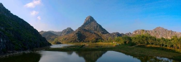 A visit to Nga Son is incomplete without stopping by Tiên Pagoda. The natural beauty and the peaceful environment of this place offer a perfect escape. When you arrive at Tiên Pagoda, it feels as though you've entered another world, a world of stillness and calm. Though only about 500 meters from National Route 10, once you step onto the path leading to the pagoda, the noise of the outside world fades away. Instead, you're greeted by the sweet songs of birds, the lush greenery of dense forests, and the majestic mountains, with the ancient pagoda’s roof peeking through the trees.