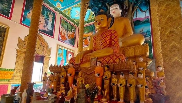 Ang Pagoda is known as the oldest pagoda in the Khmer pagoda system of Tra Vinh province. The pagoda features unique ancient architecture, decorated with various art pieces including statues of gods, angels, demons, and divine birds, all adorned with intricate designs reflecting the spiritual and cultural identity of the Southern Khmer people. Spanning over hectares, the pagoda grounds are home to numerous native plant species like starfruit, oil, bamboo, and rattan, including hundreds of towering starfruit and oil trees that provide shade for the ancient pagoda. Like other Khmer pagodas in Tra Vinh, Ang Pagoda is a complex of architectural structures including the monk’s quarters, classrooms for teaching Pali and Khmer scripts, all surrounding the imposing main hall.