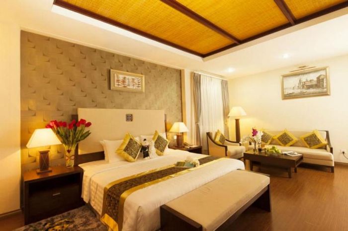 Located in Bai Sau area, The IMPERIAL Vung Tau Hotel & Resort offers Victorian-style decor and a private beach area. The hotel features an outdoor pool and two on-site dining options. Guests have access to free Wi-Fi throughout the property. Rooms are spacious and equipped with wardrobes, personal safes, and large windows offering views of the sea, pool, or city. Each room comes with a seating area, work desk, and flat-screen cable TV. Private bathrooms include shower and bathtub facilities, along with a hairdryer, slippers, bathrobes, and toiletries for guest comfort.