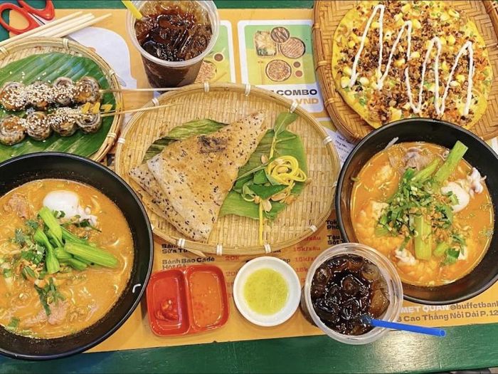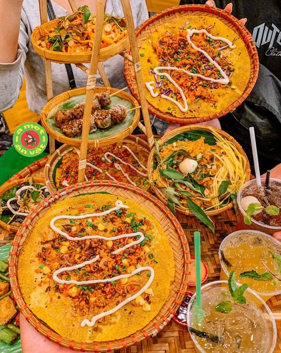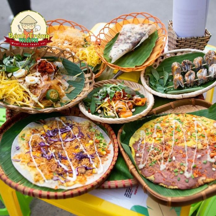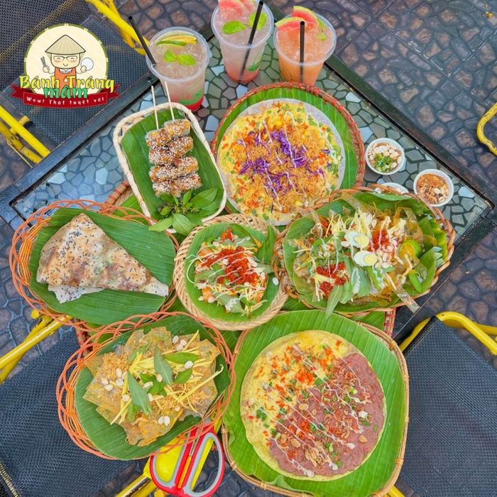For snack lovers, a must-try spot that's been all the rage in Da Nang and has now made its way to Ho Chi Minh City is Bánh Tráng Mâm. Bánh Tráng Mâm, or 'buffet rice paper,' might sound a bit unusual at first. For those who adore rice paper, this place offers unlimited access to seven distinct types of bánh tráng. The buffet includes popular variations such as Bánh Tráng Nướng Pate from Da Nang, Bánh Tráng Nướng Pizza from Saigon, Soft Bánh Tráng Rolls, Long An-style Bánh Tráng Trộn, Bánh Tráng Lụi from Tây Nguyên, Salted Egg Fried Bánh Tráng, and Bánh Tráng Mắm Ruốc from Phan Thiết.