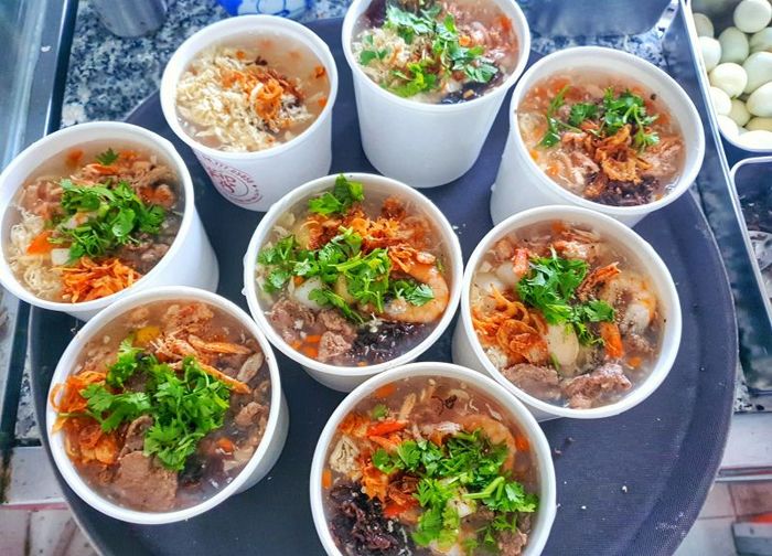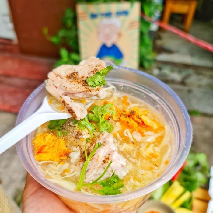The soup at Súp Đèn has a perfect thickness that remains just right, whether stirred or almost finished. Not only is it fresh and nutritious, but it's also carefully crafted with an artistic touch by the owner. Súp Đèn strives daily to serve customers with convenient, delicious, and nutritious bowls of crab soup at the best possible price. The hot soup, with its tender chicken, mushrooms, eggs, and a hint of aromatic cilantro, is a truly satisfying experience.