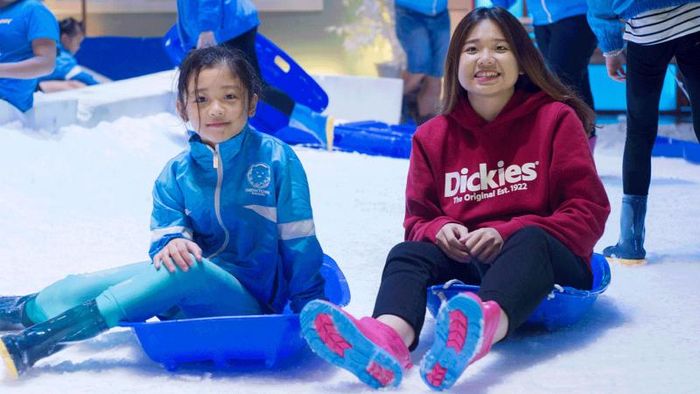 - The snow is artificially created using advanced Japanese technology, ensuring soft, fluffy snow with a temperature around 18°C, not too cold for everyone to enjoy. Besides the snow play area, there are several cafes and restaurants for families to relax after a fun-filled time with their kids.