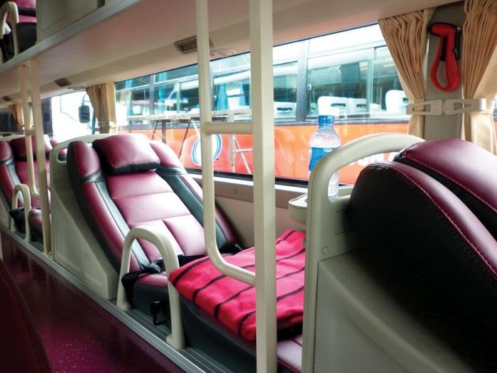 Understanding the need for relaxation on long journeys, Phuong Trang offers numerous amenities. All sleeper buses feature soft leather upholstery and adjustable backrests for added comfort. The seats are supported by sturdy steel frames, ensuring safety for all passengers. The floors are covered with anti-slip PU carpets, making them especially safe for children, pregnant women, and the elderly. This material also provides a comfortable walking surface, ensuring a smooth and enjoyable ride.