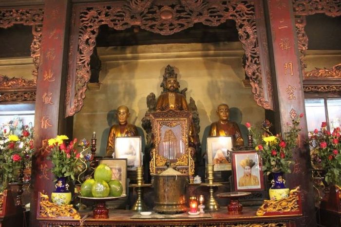 This pagoda was once chosen as the central headquarters of the Northern Vietnam Buddhist Association in 1934. In addition to the Three Jewels, Avalokiteshvara, Maitreya, and Shakyamuni Buddha, Quan Su Pagoda also venerates the famous national teacher under the Ly dynasty, Nguyen Minh Khong. Until today, the Vesak celebration of the Vietnam Buddhist Sangha is still held at the pagoda with the support of numerous volunteers, monks, Buddhists, and citizens of the capital. People attend the ceremony to pray for good fortune and express their deep reverence.