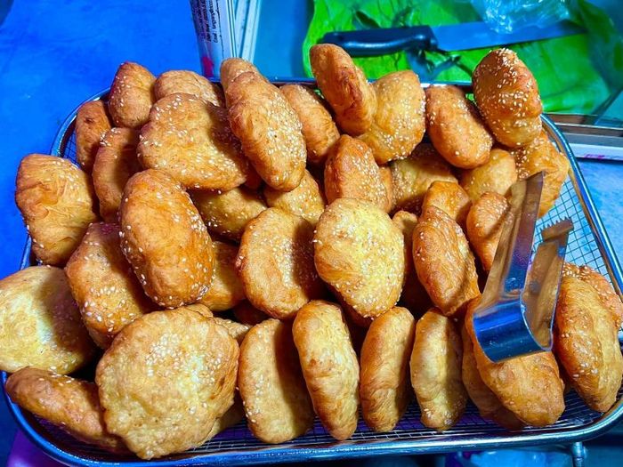 With simple ingredients like flour, but made with great skill, the Bánh Tiêu here is always perfectly puffed, resembling a balloon with an airy filling. The golden, crispy exterior is light and fragrant with the aroma of sesame and flour. These Bánh Tiêu are lightly coated with sugar, giving them a subtle sweetness, and the filling is satisfyingly full, making it easy to eat several without feeling overly full. At Bánh Bao Chiên Cao Thắng, you can enjoy these perfectly golden, crunchy pastries filled with toasted sesame seeds and a pleasant, sweet taste. Located at 69 Cao Thắng, this place offers a delightful experience with its sweet and savory snacks, plus many other tempting treats to try.