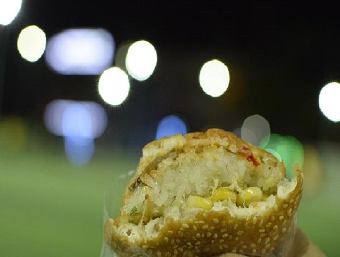 The Bánh Tiêu is sliced open and filled with cucumber, boiled corn, crispy fried onions, shredded pork, and a soft boiled quail egg, then topped with sticky rice. You can also add Vietnamese pork sausage or BBQ pork, and enhance the flavor with chili sauce. For an extra touch, try adding some mayonnaise. The result is a hot, fragrant, and irresistibly crispy treat. The sticky rice is soft and fragrant, perfectly complementing the savory fillings and crispy Bánh Tiêu.