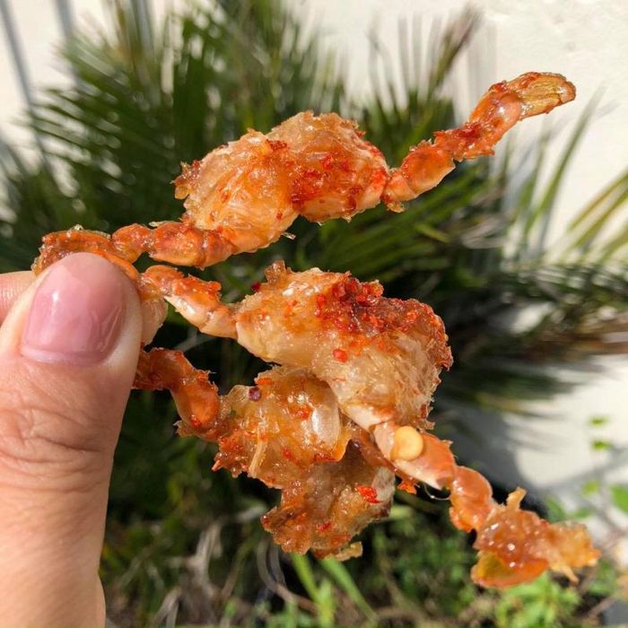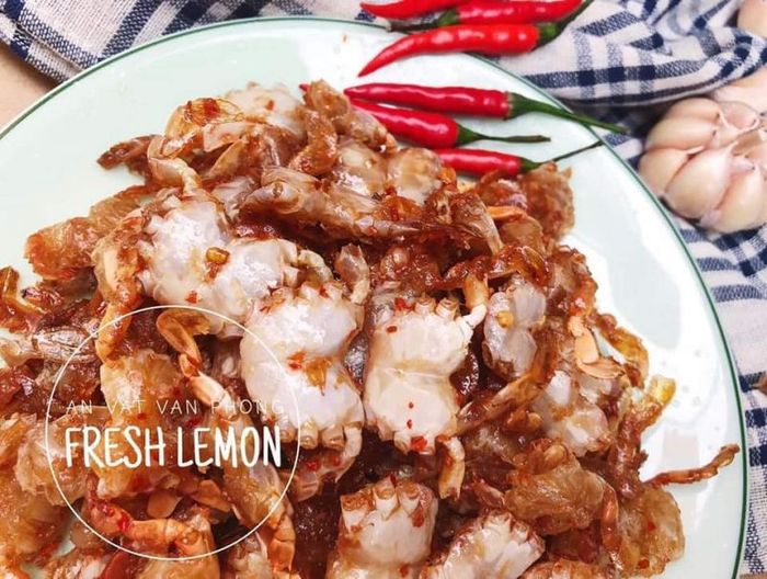 Chú Mạnh's SnackSoft-shell crabs stir-fried with a perfect balance of sour, spicy, salty, and sweet flavors are a specialty of Nha Trang. Made from fresh crabs, carefully cleaned, seasoned, and packaged, this dish is not only delicious but also nutritious, packed with vitamins and minerals. The crispy crab meat offers a delightful texture with a spicy, sweet, and salty taste that can be enjoyed on its own, paired with rice, or served as a side with beer. Another favorite at