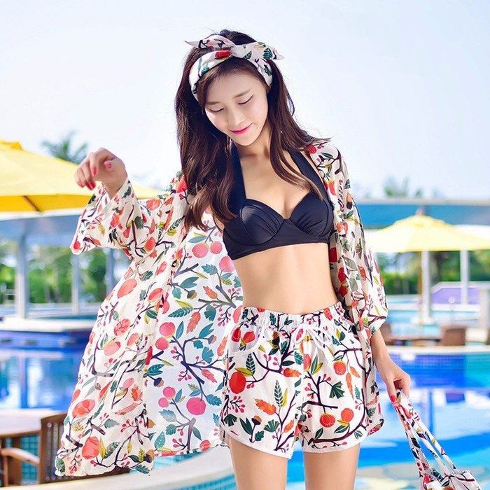 Additionally, swimsuits paired with shorts are great for women who want to conceal their hips. A model wearing shorts exudes comfort and confidence since there’s no need to worry about them slipping during movement. For the top, opt for styles with ruffles, pleats, or a high neckline for the most coverage. Ruffled designs are also perfect for boosting confidence for women with a smaller bust. It’s a clever and fashionable choice for swimwear, don’t you think?