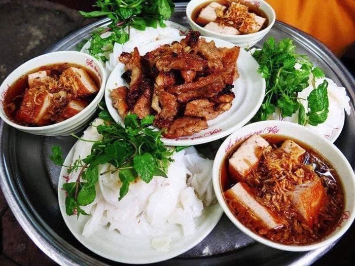 Mạnh Hùng's Bánh Cuốn offers the perfect spot for a delicious breakfast in a spacious and comfortable environment, ideal for sharing with friends and family. The special dipping sauce here is infused with a few drops of cà cuống (water beetle) essence, elevating its flavor. Mạnh Hùng's Hot Bánh Cuốn is a must-try for those looking to savor a traditional taste of Hanoi’s finest bánh cuốn. Located in Long Biên, this place offers not only bánh cuốn but also flavorful chả quế (Vietnamese cinnamon sausage), chả lụa (Vietnamese pork sausage), bánh đậu (fried rice cakes), and the distinctive aroma of cà cuống that leaves a lasting impression.
