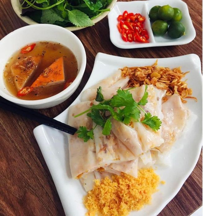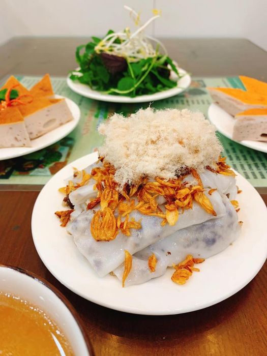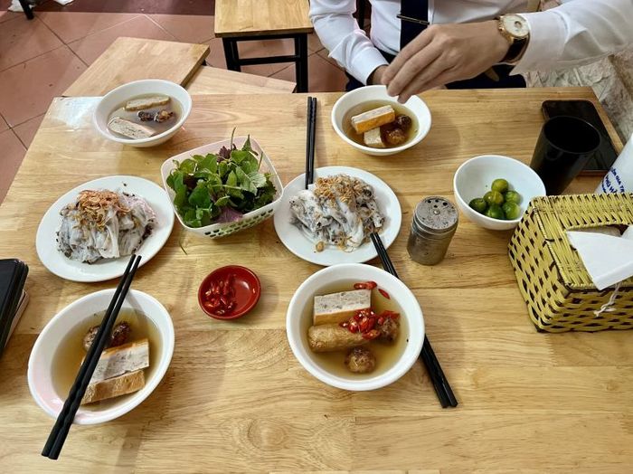 If you are in Long Biên District, you definitely cannot miss Bà Hoành's Bánh Cuốn. The bánh cuốn here is particularly beloved by locals. The restaurant has a simple, clean atmosphere where you can enjoy soft bánh cuốn wrapped around delicious lean pork, crunchy wood ear mushrooms, and a perfect dip of sweet and sour fish sauce. Bà Hoành’s bánh cuốn is known for its thin, yet chewy, smooth layers, making it hard to find any bánh cuốn thinner. Despite being so delicate, the bánh cuốn is incredibly elastic and soft. What's even better is that the price is very affordable, especially for students and young people.