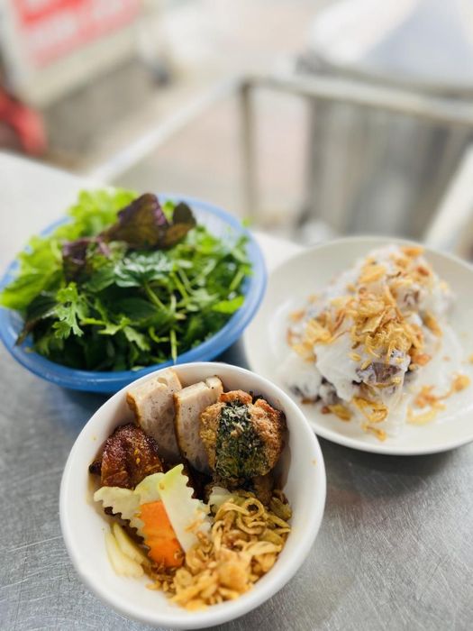 Another popular name among bánh cuốn enthusiasts is Bánh Cuốn Bà Liền. Frequently featured in food reviews by young foodies, this place is known for its quick and skillful preparation. Watching the owners effortlessly make the bánh cuốn is a spectacle in itself – fast, precise, with no unnecessary motions. Whether served hot or cold, the bánh cuốn retains its signature flavor. The dish is so delicious that just a bowl of homemade bone broth dipping sauce is enough to make the meal satisfying without the need for additional sides.