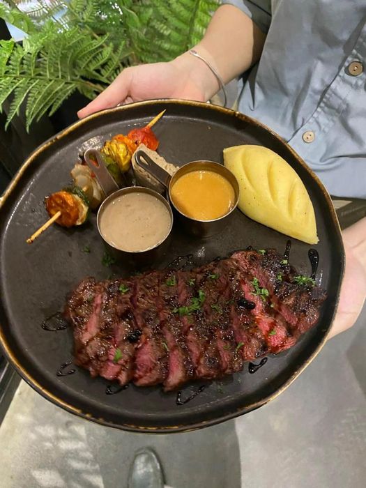 Steak Me Restaurant is a cozy, two-story spot tucked away in an alley. Their steak meal features a portion of tender beef, served with bread and potatoes, offering a great value and perfect for a moderate appetite. The beef steak is tender, fresh, and cooked to perfection, making it a sweet and satisfying experience. The prices are affordable, catering to all groups: families, young people, and students. They even offer safe parking for motorcycles, and there's parking available for cars. The service is friendly and cheerful.
