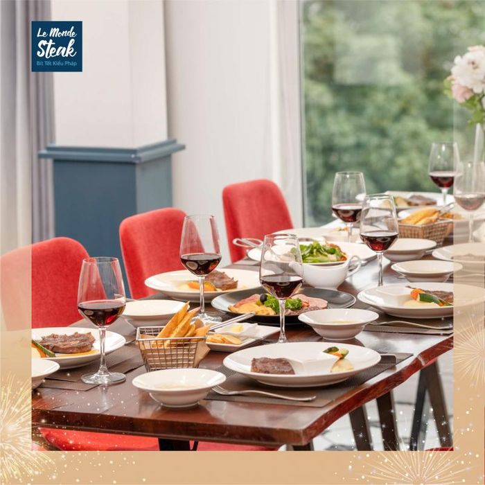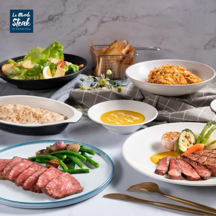 Le Monde Steak is a popular restaurant that specializes in serving premium beef steaks and French-inspired dishes. With a modern and youthful French ambiance, it has become a beloved spot for office workers and families in Hanoi. Offering a rich selection of European-inspired meals, the menu at Le Monde Steak features delicious options from tender beef steaks, lamb, and pan-seared fish to a variety of flavorful French-style stews. Prices range from 150,000 to 250,000 VND per person. A popular choice for many food lovers in Hanoi is to start with a fresh and crispy salad, followed by an array of meats or seafood, and then finish with tempting desserts to round off the dining experience.