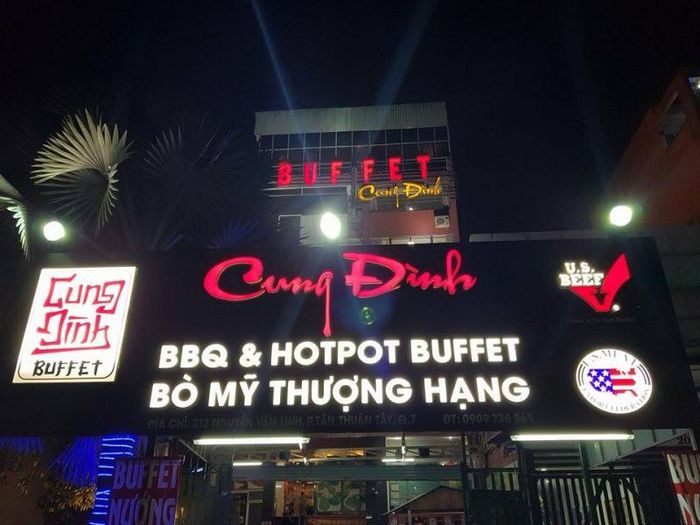 Another great spot for buffet lovers in District 7 that Mytour recommends is Cung Đình BBQ Buffet. This is a casual, affordable buffet experience where you don’t have to go up and serve yourself. Simply choose your seat, select a set menu, and the staff will bring your meal right to your table. You can enjoy a hearty feast with premium cuts of beef, pork, chicken, and incredibly fresh seafood.