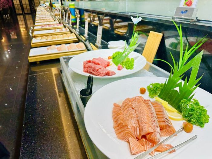 Buffet D’Maris offers over 200 delicious dishes from Korea, China, Japan, Europe, and America, and is open 24/7 to serve you. A special feature is the seafood section, offering dishes like cheese-baked scallops, grilled scallops with onion oil, garlic buttered clams, and satay-flavored oysters, along with a variety of other seasonal seafood. The buffet setup, with its attractive display, adds to the visual appeal of the food. Another highlight of D’Maris is its dedication to using only fresh, seasonal ingredients, sourced daily to ensure top-quality flavors. Visit D’Maris Buffet in District 7 to experience the exquisite taste of the ocean right at your table!